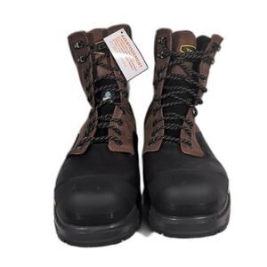 Terra Gantry Work Boots Men's Size 9W Black/Brown Waterproof Composite Toe S973 Composite safety toe meets ASTM F2413-18 standards, Electrical Hazard (EH) rated, Slip-resistant Vibram outsole, Padded collar and tongue for long-wear comfort, Reflective Details (MSRP $250)