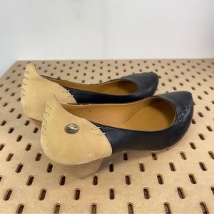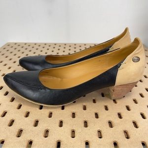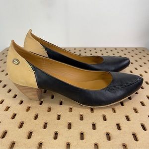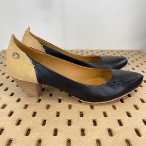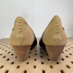 Terra Plana Women’s Leather Babydoll Stitched Stacked Heel Tan/ Black Size 40 (US 9.5)