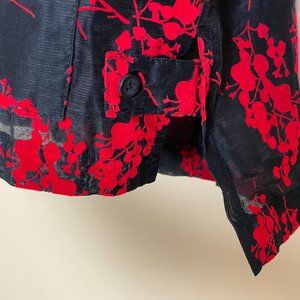 Terra SJ Apparel Art to Wear Floral Silk Crop Jacket Blazer Medium Collarless