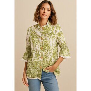 Terra SJ Apparel Green Floral Tunic Blouse Women’s S Cotton Rayon Button Front