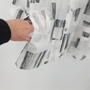Terra SJ Apparel Lagenlook Button Up Top Blouse Pockets Abstract Print Tunic