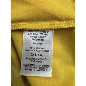 Terra Sky 0X Yellow Top V-neck Curved Hem Short Sleeve Stretch Cotton Blend