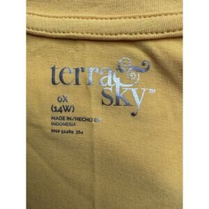 The Terra Sky 0X Yellow Top is a versatile and stylish addition to any woman's wardrobe. Made from a comfortable cotton blend with a stretch for ease of movement, this top features a V-neckline and a curved hem for a flattering silhouette. Ideal for various occasions including travel, parties, casual wear, work, and business, this pullover top in a vibrant yellow color is perfect for the summer, fall, and spring seasons. With its regular fit and breathable fabric, this Terra & Sky top offers both style and comfort for everyday wear.