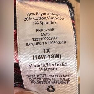 Add a touch of peasant style to your wardrobe with this beautiful Terra & Sky blouse. The red color on black background is perfect for travel, casual or business occasions. The long balloon sleeves and relaxed fit make it comfortable to wear, while the floral pattern adds a touch of elegance. Made of a soft cotton, spandex, and rayon fabric, this blouse is perfect for any season. The blouse is available in size 1X. See pictures for further description and measurements
