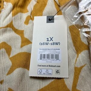 Terra & Sky 1X Yellow Floral Blouse Off Shoulder Convertible Top