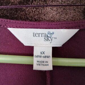 Terra & Sky Dress Womens 1X Long Sleeve Stretch Knee Long Scoop Plum Knit Plus size