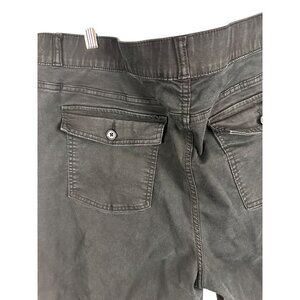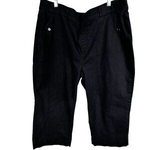 These women black cargo pants feature a relaxed fit, ideal for a comfortable yet stylish look. Designed with button pockets, they offer functionality and a sleek appearance, making them suitable for casual or professional settings. Size 2X SKU 3839