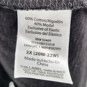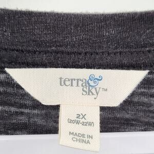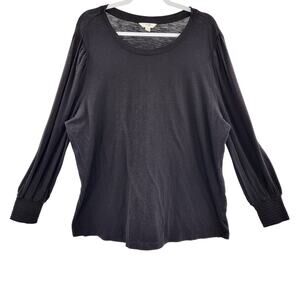 Terra & Sky Black Cotton Top Long-sleeve Elasticized Wrists Women's Plus Size 2X