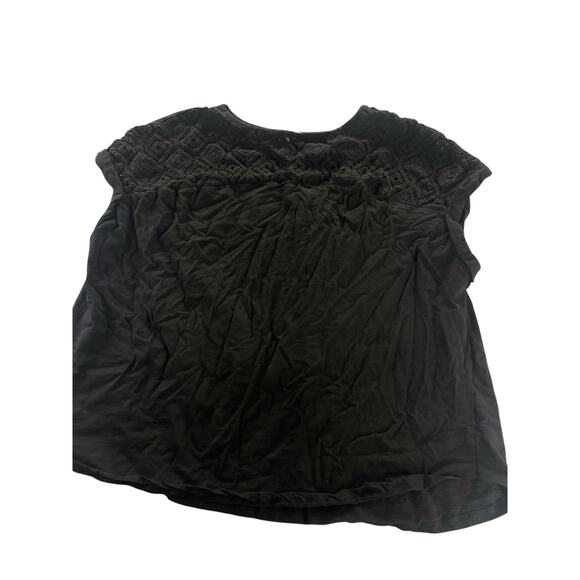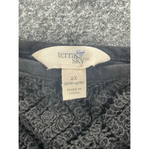 Terra & Sky Black Lace Crochet Yoke Short Sleeve Top Blouse Women's Size 2X