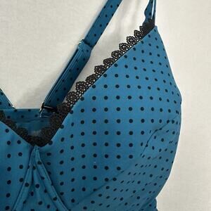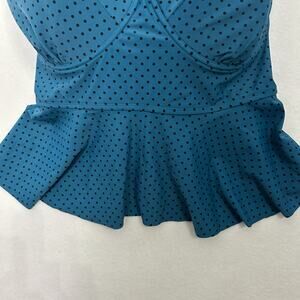 Terra & Sky Black Tankini Top 4X (28W-30W) Teal Polka Dot Padded Beach Swim NWT