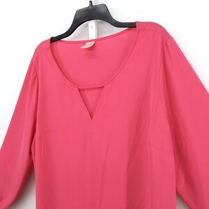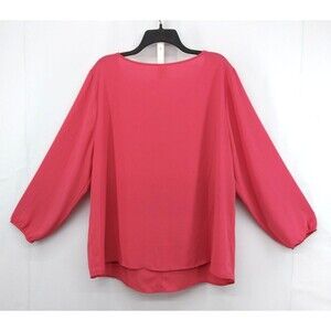 Terra & Sky Blouse Womens Size 1X Pink Keyhole Neck Balloon Sleeve Pullover Top