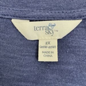 Terra & Sky Blue Top Size 2X V-Neck Flowy Fit Flare Stretch Blouse