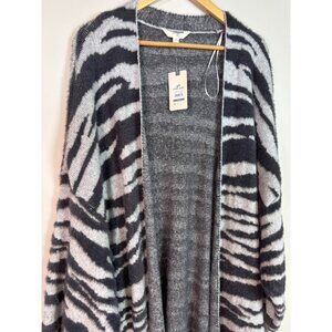 Terra & Sky Cardigan 4X Gray Tiger Stripe Jacquard Eyelash Duster Open-Front NWT