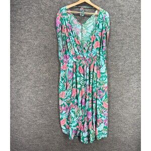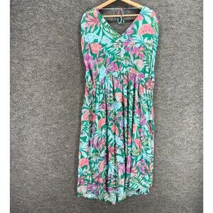 Terra & Sky Dress Women 1X Plus Blue Flloral Shift Short V-Neck Sleeveless