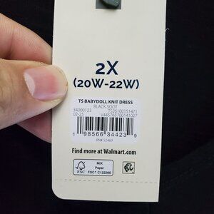 Terra & Sky Dress Womens 2X Black Babydoll Knit Plus Short Sleeve *NWT*