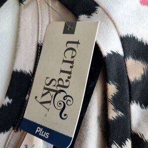 Terra & Sky Dress Womens 3X Leopard Print Flutter Sleeve T-Shirt Dress Beige Bla