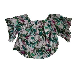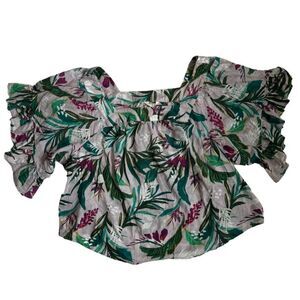 Terra & Sky Floral Boho Shirt Ruffled Sleeves Tropical Top SZ 2X