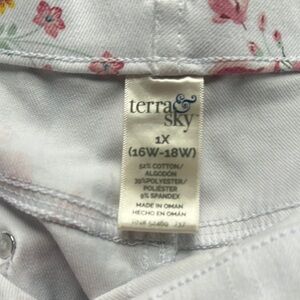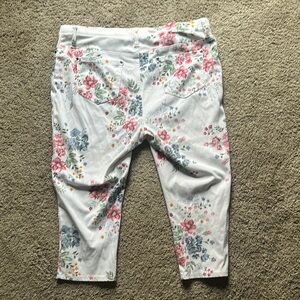 Stylish floral capris by Terra & Sky. Features a vibrant floral pattern. Perfect for casual outings.