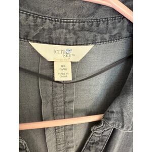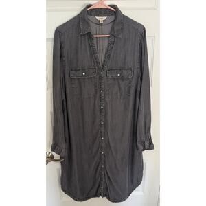 Terra & Sky Gray Chambray Shirt Dress 0X (14W) Long Sleeve Snap Pockets