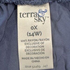 Experience comfort and style with these Terra & Sky high waist shorts, featuring a soft blue hue and a delicate scalloped hem. The elastic waistband with a drawstring ensures a perfect fit, while the lightweight fabric offers a relaxed and breezy feel. Has pockets, size 0x- 14w