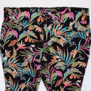 Terra & Sky Pull On Pants - Size 4X = Size 28W-30W - Jegging style - Elastic waist - Black floral print fabric - Faux front pockets and buttons - 60% cotton 36% polyester 4% spandex