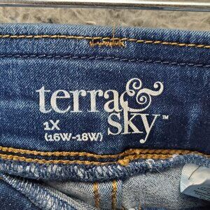 Terra & Sky Jeans Womens 1X 16W/18W Blue High Rise Stretch Denim Tapered Leg