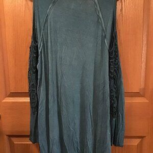 Terra Sky Long Sleeve Shirt, Open shoulders and arms are all lace pattern, Scoop Neck, 1X , great with blue jeans