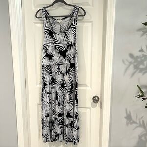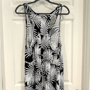 Terra & Sky Midi Tropical Racerback Tank Sleeveless Black White Leaf Print Dress Cover Up Plus Size 0 Vacation Summer Beach
