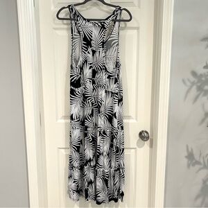Terra & Sky Midi Tropical Racerback Black White Leaf Print Dress Plus Size 0