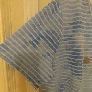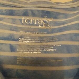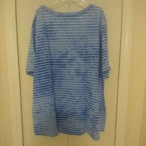 Terra & Sky Notched Neck Blue Striped Tee New with Tags Size 2X