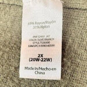 Terra & Sky Olive Green Open Front Longline Cardigan Sweater Women’s Plus 2X