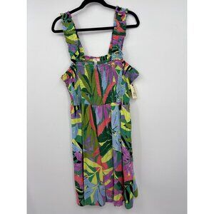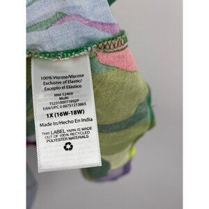 Terra & Sky Peasant Boho Smocked Tropical Floral Dress Green Multi Color 1X NEW