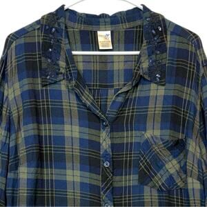 Terra & Sky Plaid Button Up Down Shirt Women’s Plus Size 2X 20W-22W rayon
