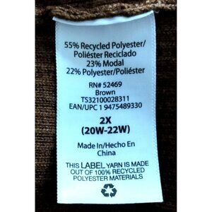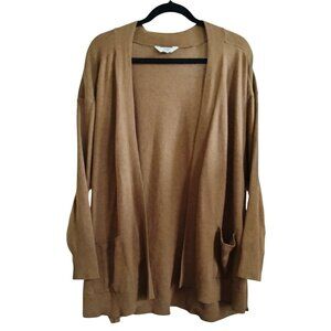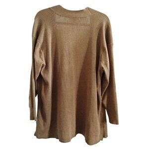 Terra & Sky Plus Size 2X Cardigan Sweater Open Front Ribbed Light Brown Pockets