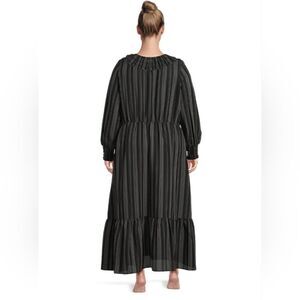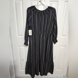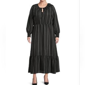 Terra & Sky Plus Size Dress Black Gray Peasant Tiered Long Sleeve Maxi