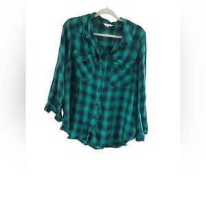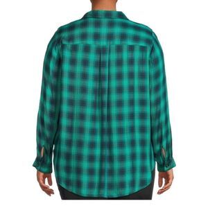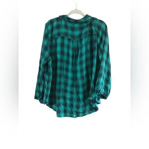 Terra & sky Size one X green long sleeve plaid shirt button up pockets neighbor hundred percent viscose long sleeves excellent condition no issues Cample A3 26