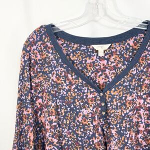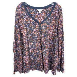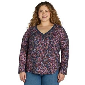 Terra & Sky plus size top, 4X floral henley shirt, long sleeve plus size blouse, navy floral print top 4X, comfy casual top plus size, Terra & Sky long sleeve tee, plus size everyday shirt, fall floral print plus size, cozy cotton blend top 4X, plus size v-neck henley, relaxed fit floral blouse, Terra & Sky 4X casual wear, flattering plus size floral top, button detail shirt 4X, Terra & Sky printed tee