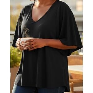 Terra & Sky Pull Over Shirt Plus Size 3X XXX 24W 26W Top Black Tunic V Neck S/S