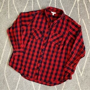 Terra & Sky Red Plaid Flannel Button Down Shirt