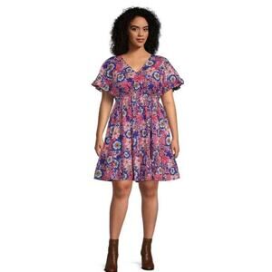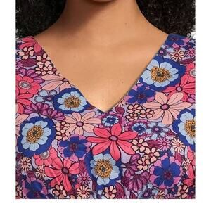 Terra & Sky Retro Floral/Lilac Bud Tiered Ruffle Midi Dress Plus Size 4x New
