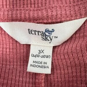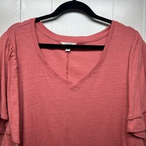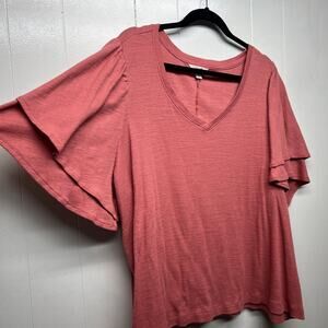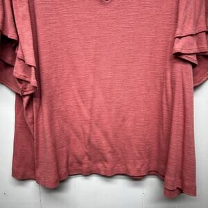 Terra & Sky Ribbed Ruffle Sleeve Women's Pink Pullover Top Size 3X Stretch