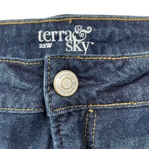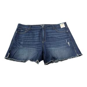 Terra & Sky Size 22W High Rise Dark Wash Frayed Hem Side Slit Denim Jean Shorts