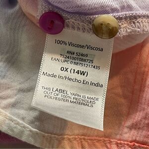 Terra & Sky Striped Button Down Sleeveless Shirt Purple Blue Pink, Size 0X 14W