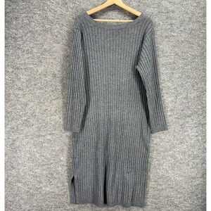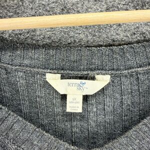 Terra & Sky Sweater Dress Women 1X Plus Gray Midi V-Neck Long Sleeve Casual
