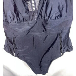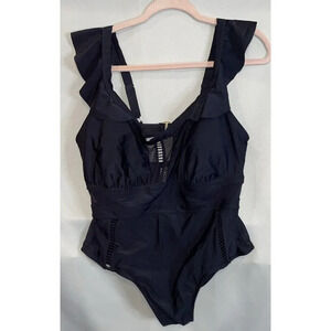 Terra & Sky Swimsuit 0X 14W One Piece Black Gold Hardware Lattice Trim Ruffles