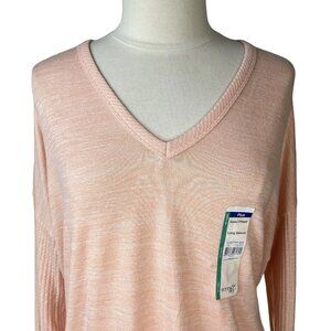 Terra & Sky Thermal Ribbed Shirt Womens Peach 0X New Too Long Sleeve Semi Fitted