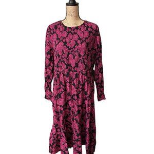Terra & Sky Tiered Maxi Dress in a size 1X. New with tags. Black color background with a floral print. Laying flat pit to pit 23in. Length is 45in.