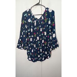 Terra & Sky Top Blouse Womens Plus 1X Blue