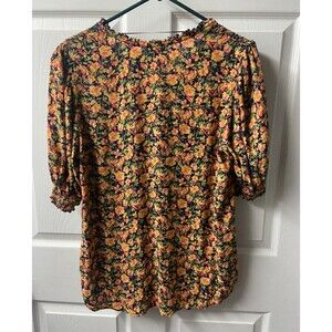 Terra & Sky Top Womens OX Floral Short Sleeved Boho Peasant Blouse Round Neck