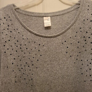 So soft and classy, sure do wish it fit me! Tunic has the cutest ruffles on the bottom side vents and the studded rhinestones and black dots look like they plan to stick around!! This is a top for the long haul and gets along well with others! Sure to co-ordinate with many items in your closet.